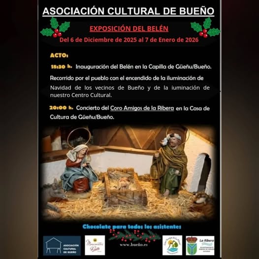 Cuándo: Sábado 6 de diciembre de 2025 :Inaguración del Belén en la capilla de Bueño-Güeño a las 18:30h a continuación recorrido por el pueblo y inaguración de la iluminación.